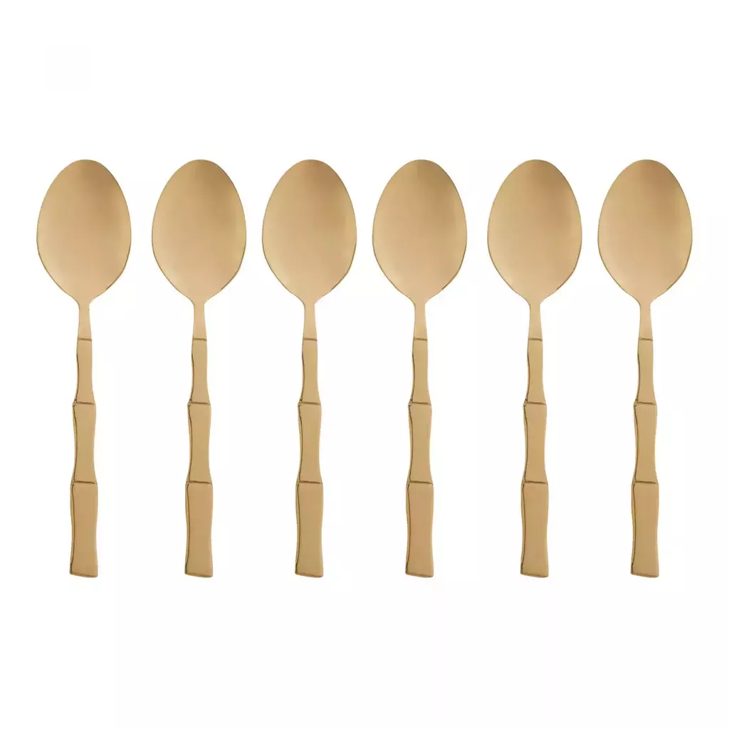 Conjunto 6 Colheres para Mesa de Aço Inox Bambu Elegant Champanhe 21cm